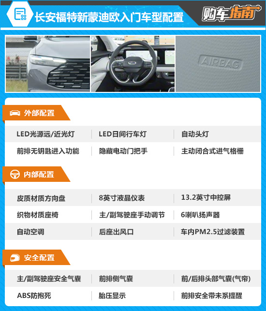 2025年12月4日,长安福特新蒙迪欧正式上市,新车共推出6款车型,官方指导价区间为14.98-19.98万元。同时,官方还推出购车出行礼、贴心置换礼、无忧保养礼等至高32888元购车权益(详情请咨询当地经销商)。