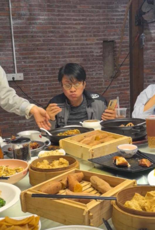 从该网民分享的视频可见,尹天照正在与友人一起吃饭,当日尹天照依旧戴着标志性的眼镜,身穿灰色外套,状态看着还不错。