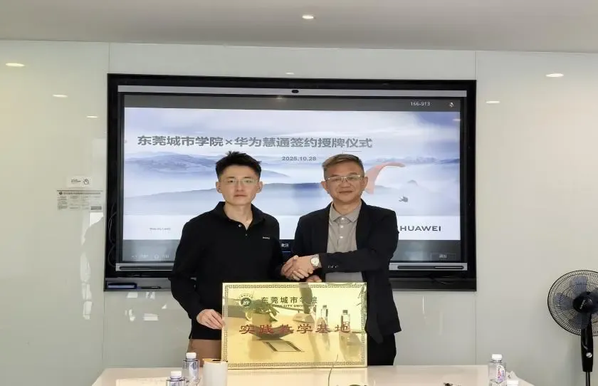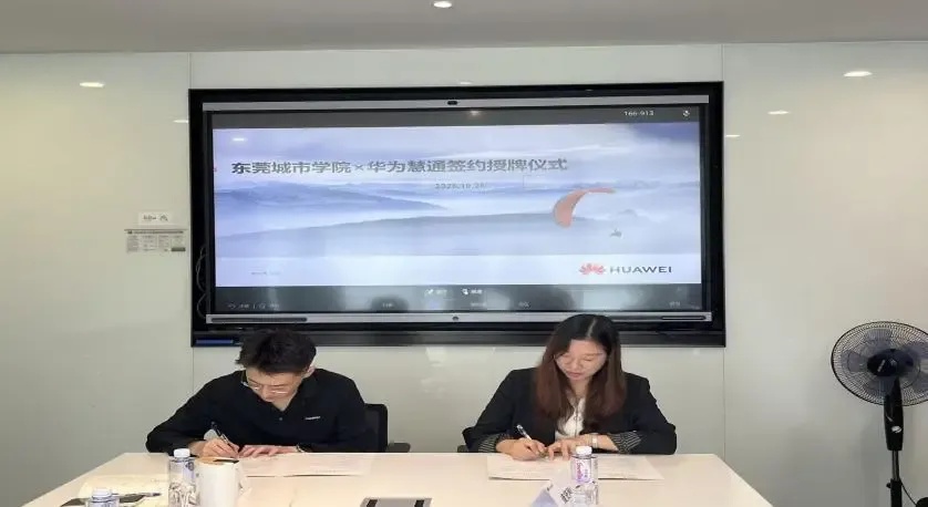 随后,东莞城市学院商学院副院长罗芳与华为慧通区域总经理贾鹏震共同签署合作协议,与此同时,东莞城市学院副校长康贤刚为华为慧通授予实践教学基地牌匾。双方合作正式迈入实质性推进阶段,后续将依托实践教学基地,为学生搭建更贴近企业真实工作场景的实践平台。此次校企合作既能助力强化学生的实践操作能力与创新思维,也为校企深度协同育人筑牢关键基础。